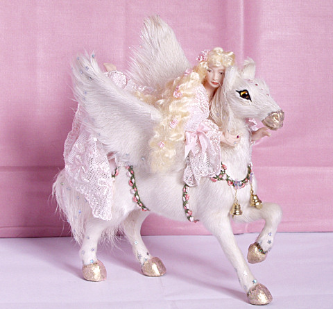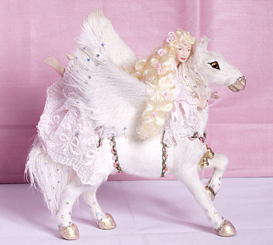 dressed one-twelfth scale winged fairy riding a beautifully decorated OOAK